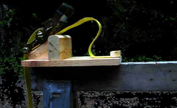 Utilizar una abrazadera o vice regular para mantener su registro durante el corte, pero es muy probable que el registro será demasiado grande para caber en una abrazadera o Vicepresidente de la mesa de trabajo regular. Puede utilizar una correa de trinquete para sostener el tronco hasta el otro trozo de madera, caballete, o a una mesa con el extremo del tronco que se extiende más allá del borde. El corte va a salir más preciso, y no dañar la hoja. Puede utilizar una correa de trinquete básica, o hacer una correa de abrazadera de retazos de madera y un trinquete. Hice una carpintería plan sobre cómo construir su propia abrazadera de correa de trinquete. Carpintería rústica tiene un plan de carpintería de abrazadera de correa gratis así que usted puede construir su propio.