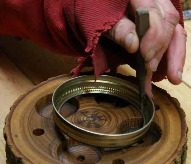 Se trata de un tarro de masón madera 12 pulgadas de altura, tallada en un tronco de cerezo.Esto se hizo como un regalo para mi esposa. Ella odia cosas de decoración para el hogar fabricados en masa, hizo-en el extranjero, por lo que nuestra casa está