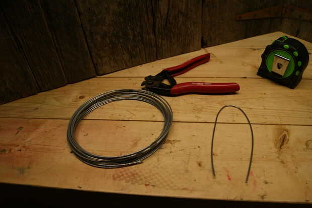 - Cortar un trozo de alambre de calibre grueso o percha sobre un pie de largo. Doblar por la mitad.
