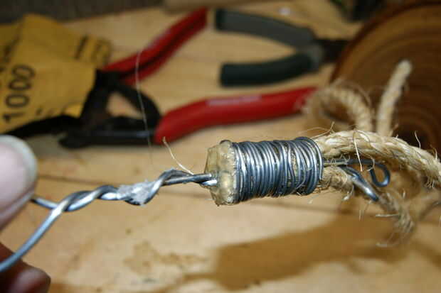 - Enrolle el cable alrededor de la cuerda para acerca de una pulgada, o cuánto la quieres.