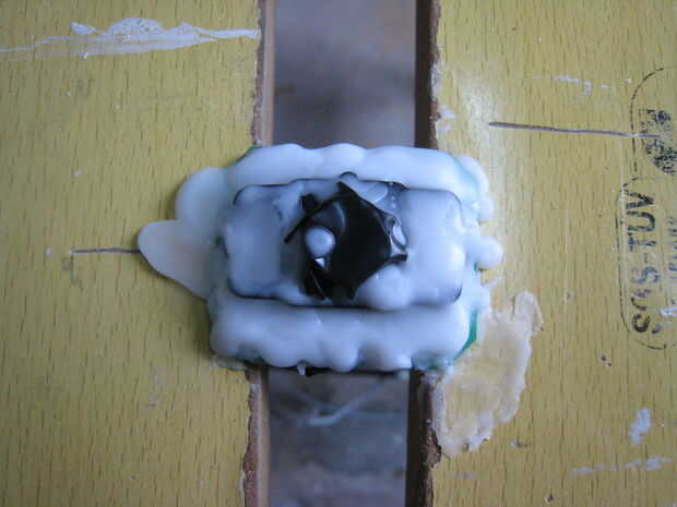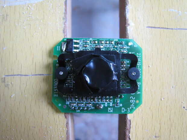Humedad y de PCB generalmente no van juntos bien. Así que... la manera más fácil 'a prueba de humedad', se lo sumergimos en candlewax (parafina). He quitado la parte enfocable de la leva y poner alguna cinta negra en. Encendió algunas velas y esperaron. Y esperaron.