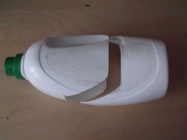 La casa: cuenta de la alta fachada en la parte abultada de la botella y una fachada posterior más pequeño corte fuera de la manija.