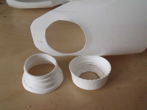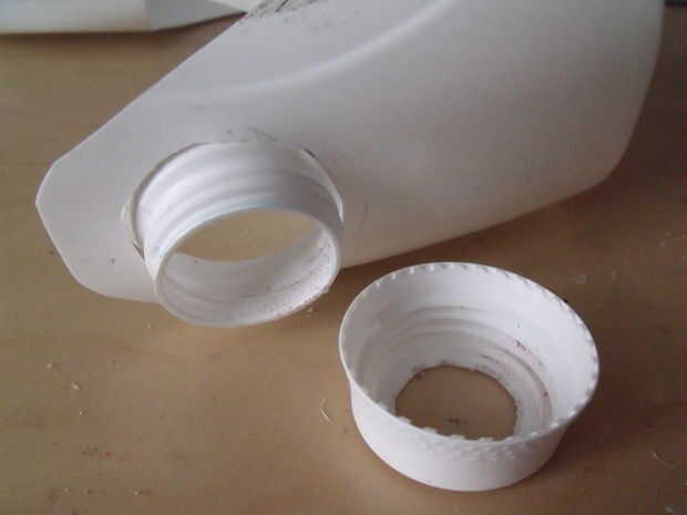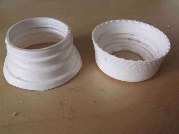 Alternativamente, como yo lo hice en la casa con borde azul podría busca una otra tapa de la botella del tamaño adecuado. Cortar la parte superior y apriete en un agujero apretado por lo que permanece sin más.