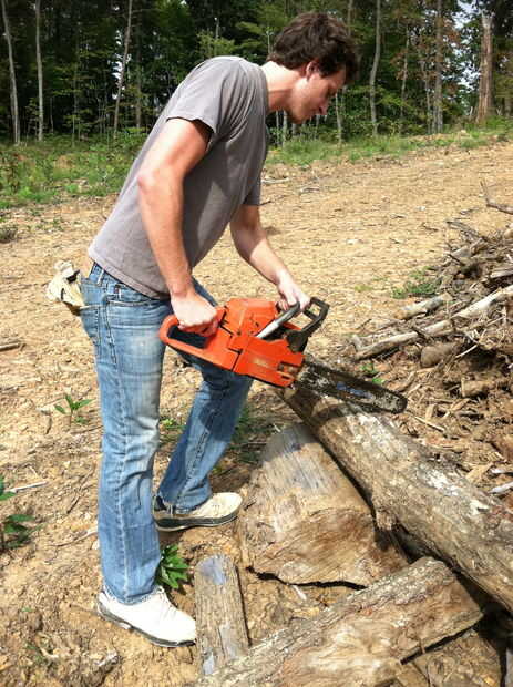 a continuación cortar una sección de dos pies. (Utilice una motosierra es mucho más fácil) Asegúrese de que usted corte el registro perpendicular de modo que puedan resistir su propia.
