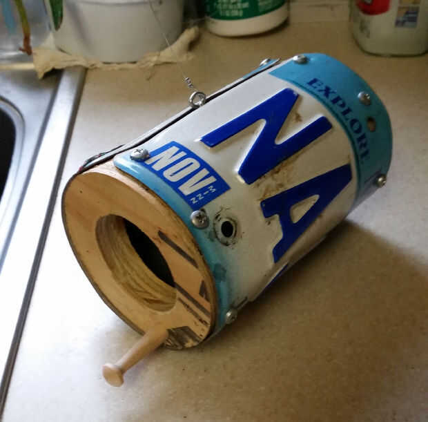 4. la matrícula en los dos círculos de madera y asegure con tornillos.