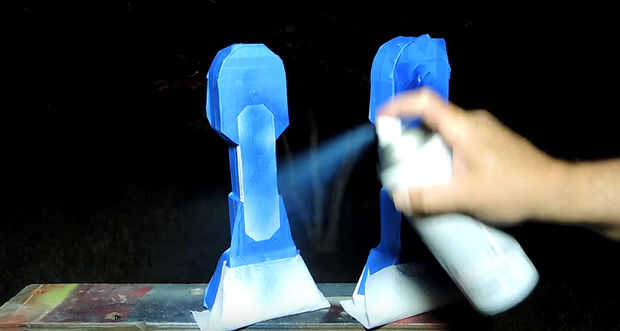 Pinté las patas blanca entonces enmascarado de algunas áreas para azul metálico. Atornilla las patas al cuerpo se fija en su lugar, pero podría agregar una arandela entre si desea ser capaz de girar las piernas y el cuerpo.