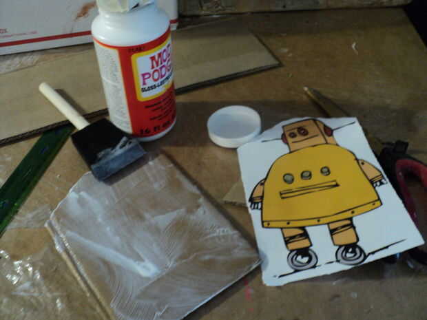 Necesitará pegamento blanco regular o Modpodge para pegar esa imagen en un pedazo de cartón.