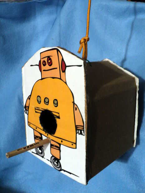 Puede trazar el contorno de la pajarera en un pedazo de cartón para hacer la pieza posterior. Puede también apenas áspero cortar un trozo, caliente pegamento en y recortar para adaptarse a los bordes.