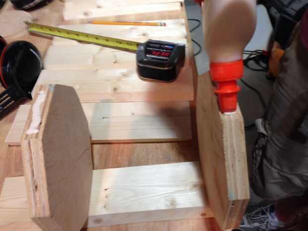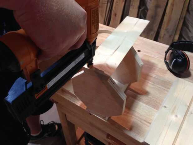 Por el dibujo, pegamento y clavo paredes a los octágonos. Trate de los últimos tramos para igualar hacia fuera de los espacios del centro.