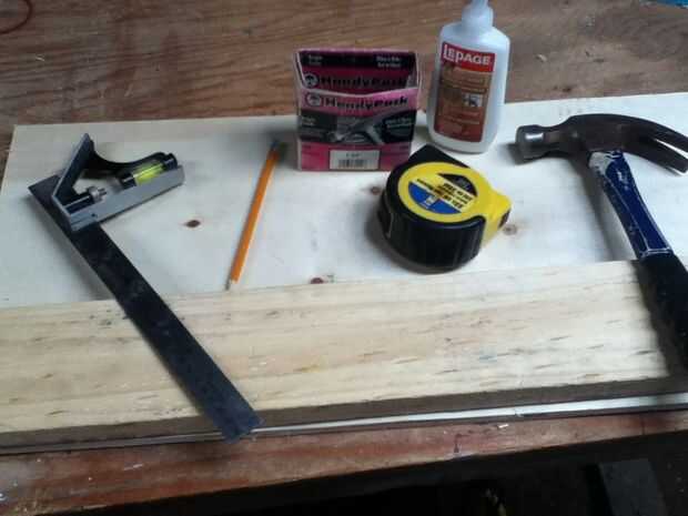 Madera (Yo utilicé restos de una plataforma libre y una pieza libre de madera contrachapada de 3/8" de Home Depot)