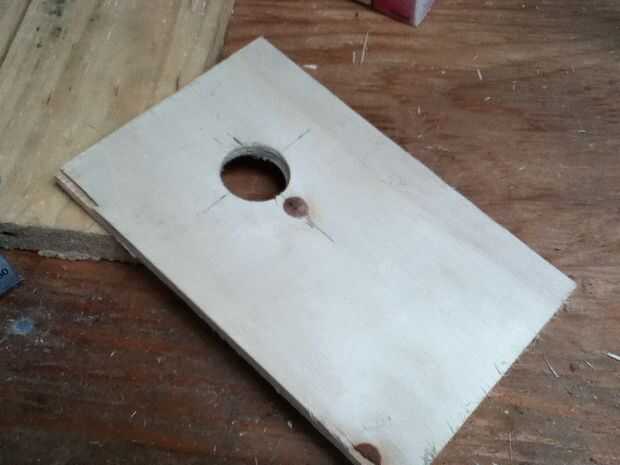 No te olvides de cortar el agujero en la placa frontal. Coloque aproximadamente 5 1/2" hacia arriba desde la parte inferior y en el centro. Que el orificio 1 1/4".