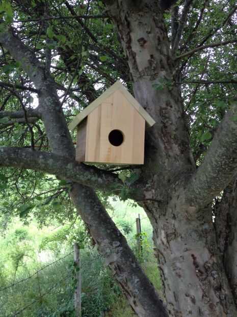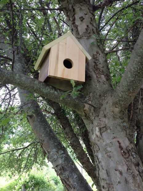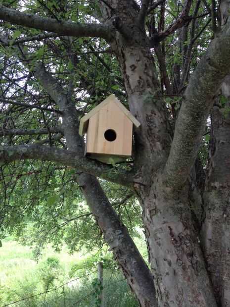 Clavo en el lado de un árbol o simplemente Coloque firmemente entre las ramas. Usted puede fijar ganchos y cadenas a la casa del pájaro y colgada si desea, o poner en tu mazo de cartas en un granero.