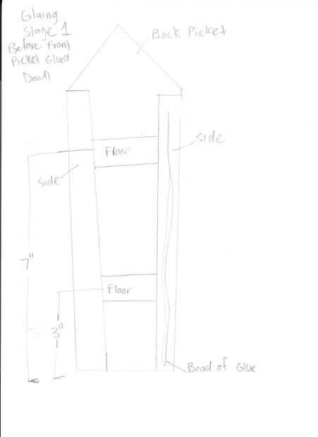 -Colocar la pajarera en posición vertical y aplique una tira de pegamento en los bordes superiores de las barras delanteras y traseras.