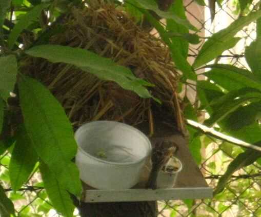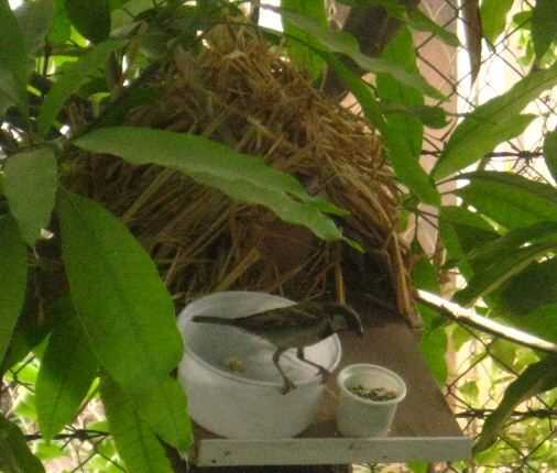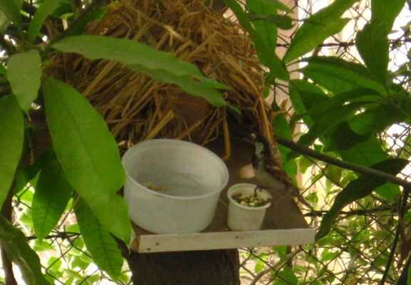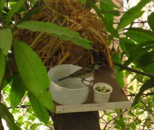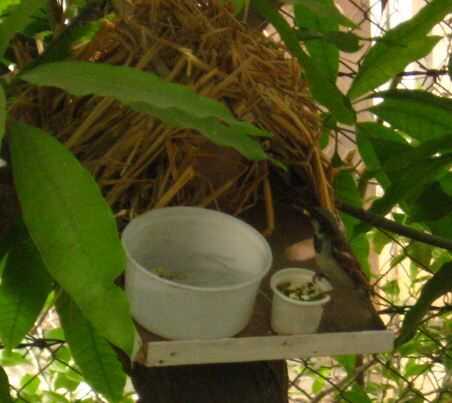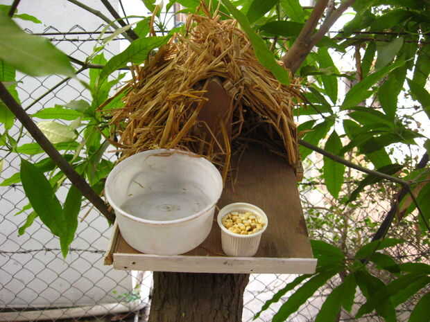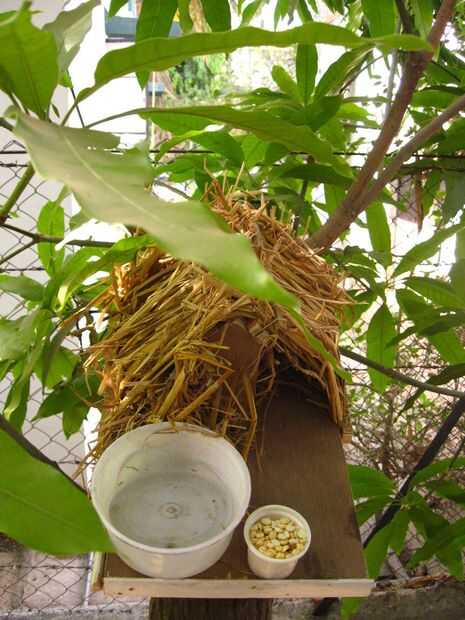 3) mantienen algunas semillas para los pájaros y agua en un recipiente pequeño de plástico