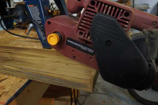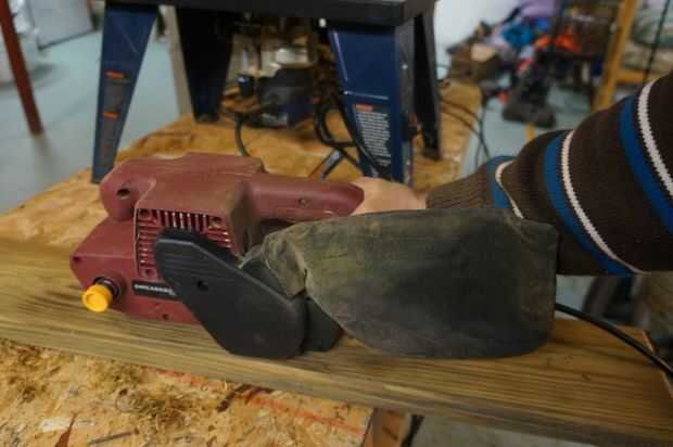 - Forma de los filos con mi lijadora de banda de carga de Puerto fiel. También usé mi escofina de madera para eliminar las astillas o lugares escabrosos.