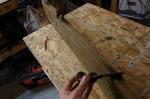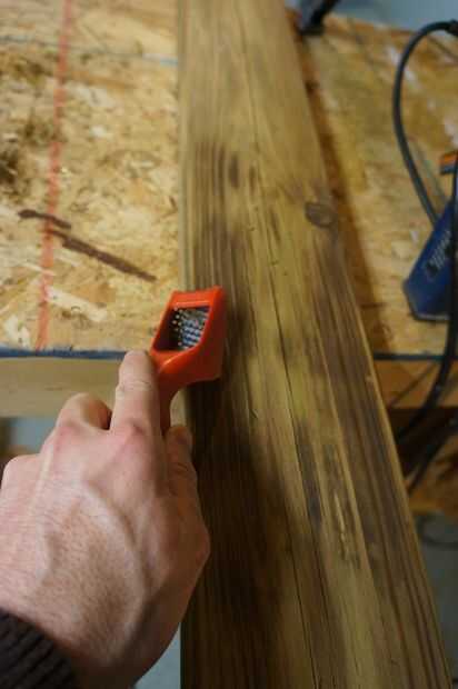 Para comenzar la transformación de un viejo Consejo conjunto swing a una lámpara que tenía que limpiarlo. Esto significaba que tenía que quitar el viejo hardware oxidado, corte a longitud, rebaje un canal abajo del centro de la parte trasera, forma los bordes de corte, textura, lo mancha y por último sellarlo.