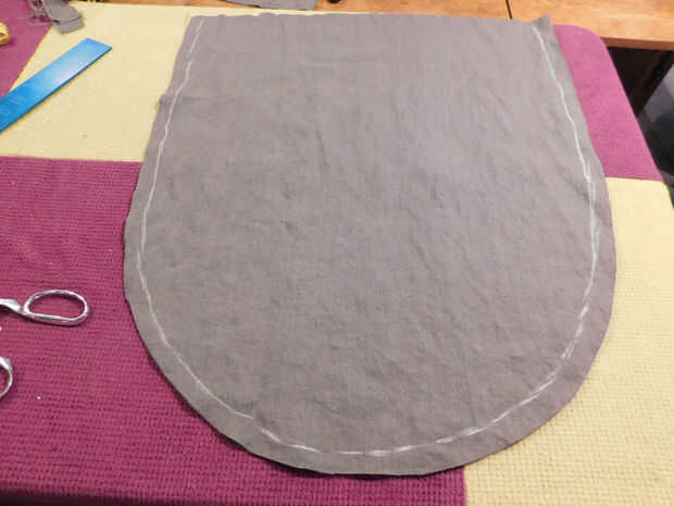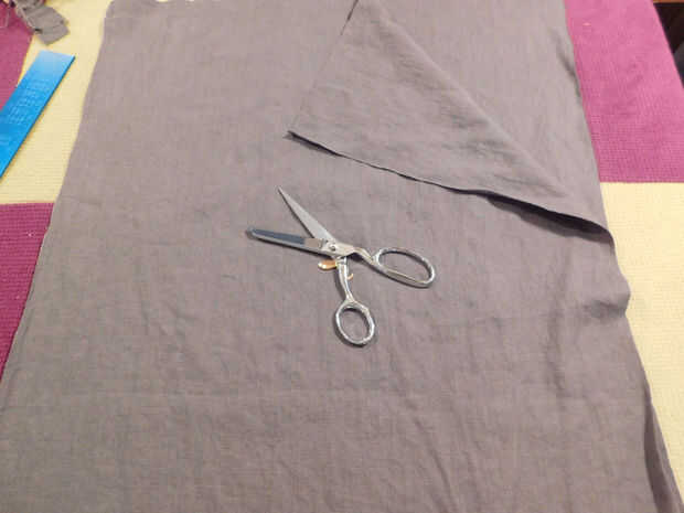 b. la tiza y cortar 2 piezas con estas dimensiones, doblando la tela por la mitad (mayoría paño dec hogar es por lo menos 54" W), rindiendo cuenta a mantener los bordes y las líneas de grano incluso. (3 º y 4 º foto)