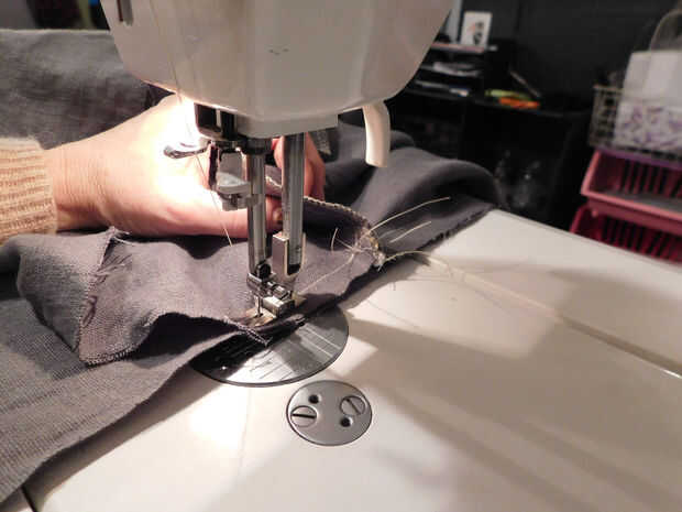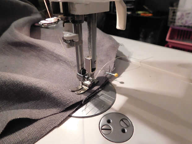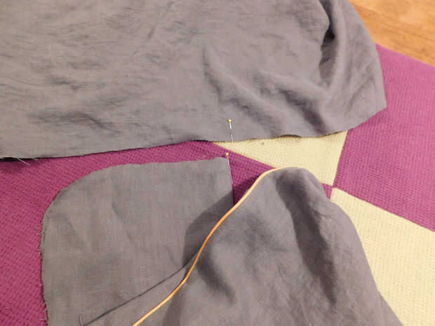 e. pin derecho lados juntos, juego de pernos y comience a coser. (Foto 5) Detente cuando hayas cosido 3" más allá de la costura lateral. (foto 6) Repita para la otra mitad.