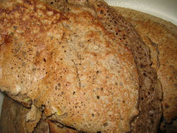 Baje el fuego una vez que el pan se calienta y vierte algunos rebozados. Agitar la sartén para estirar uniformemente la crepe.