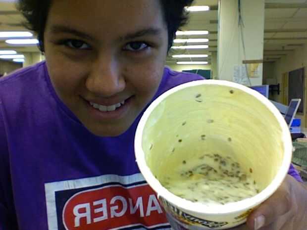 Un yogur mezclado con mezcla de lino, semilla, sendero. Gran yogur probablemente me cuesta $2,50, y estoy comiendo aproximadamente 1/3d de la misma, o sobre $0,80. Estoy probablemente comiendo unos $0,50 de aderezos, también.