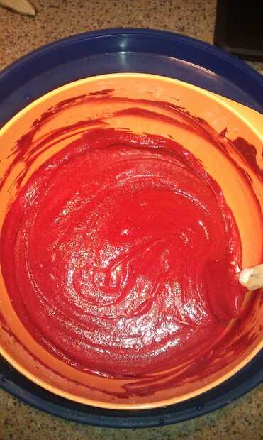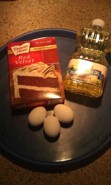 Normalmente no utilizo mezclas de pastel de caja, pero ya que esta creación tiene que ver con la presentación que el gusto, decidí ir con un simple Duncan Hines Red Velvet Cake Mix para hacer mis cupcakes. Esto hace el proceso muy sencillo. Simplemente siga las instrucciones en la caja y "voila" el bateador está listo para funcionar.