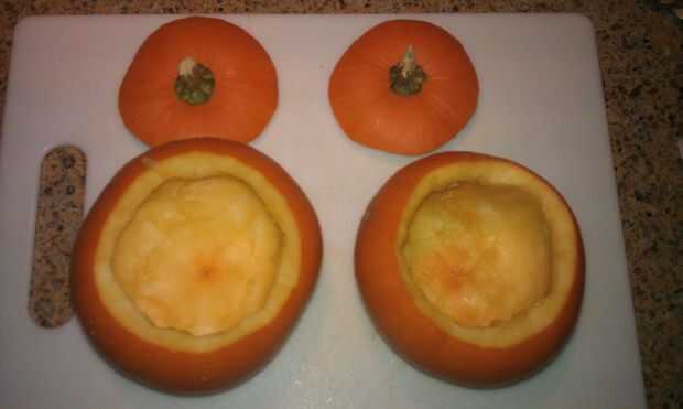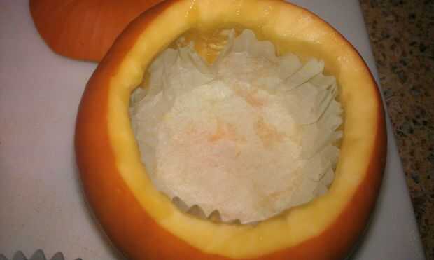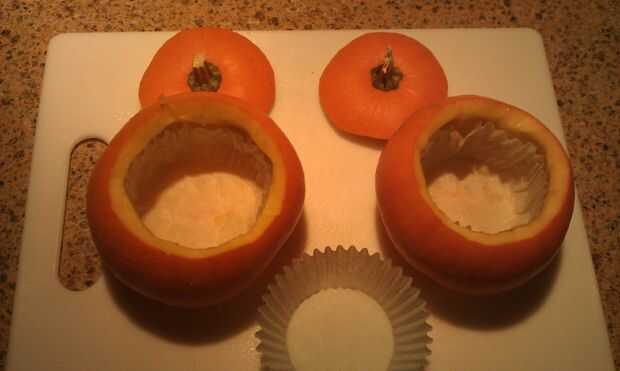 Mientras que se refrigeración mis cupcakes empecé a preparar mi mini calabazas para los cupcakes. Sólo tiene que utilizar las mini calabazas que puedes encontrar en acerca de cada supermercado alrededor de Halloween. He quitado la parte superior de las calabazas y se llevó todas las semillas, limpia la cavidad interior y luego enjuagar bien. He probado el tamaño de cada agujero mediante la colocación de un liner vacío de la Magdalena en la calabaza para asegurarse de que cabe bien.