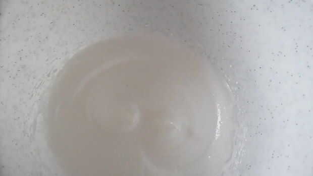 1. Agregue una clara de huevo y azúcar con una batidora. Batida mustto blanco no cae de un tazón de fuente.