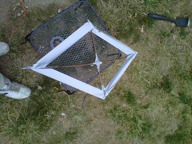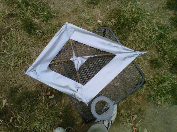 Acaba de empezar agregando la cinta como se muestra abajo, y a seguir haciendo esto hasta que haya terminado, y la cometa entera se cubre con cinta adhesiva.