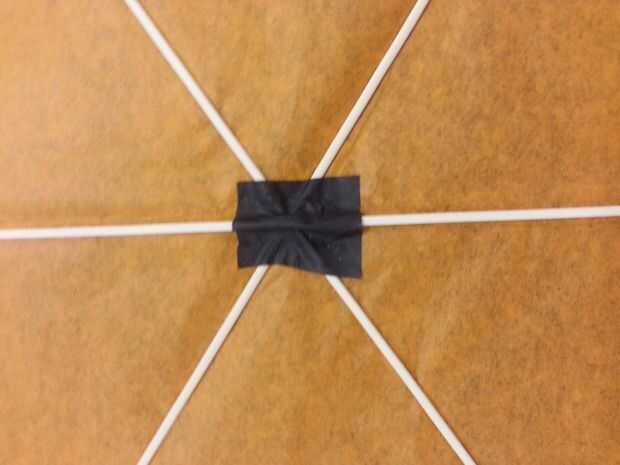 Conseguir uno de sus palos de bambú y cortarlo por lo que es 20 3/4 pulgadas de largo entonces, haz tu palo de metro y coloque horizontalmente en el papel por lo que es tocar dos lados opuestos del pañuelo de papel y haz tu cola toda botella de pegamento y hacer una fina línea de pegamento en el papel al lado de la palanca del medidor. Luego quitar el palo de metro y la botella de cola y obtener su vara de bambú de 20 3/4 en y coloque sobre el pegamento así que va todo el camino a través del papel con una pulgada colgándose en ambos lados. Luego manténgalo pulsado durante un minuto o así hasta su secado. Una vez que esté seco pone del palo medidor diagonalmente en el papel por lo que va desde la diagonal de una esquina a otra y una fina línea de pegamento al lado de él y poner pegamento en la parte superior la parte de los recambios de bambú que van el papel va horizontalmente. Entonces quitar el palo medidor y cortar tu próximo repuesto de bambú largo 35 en Coloque en esa línea de pegamento donde su salir aproximadamente una pulgada en ambos lados y en el lado donde las cosas repuesto de bambú horizontal es asegurarse de que está sobre el chapaleteo aproximadamente una pulgada y manténgalo presionado hasta que se seque. Hacer lo mismo en el otro lado diagonal de su Papalote y mantenga el mástil de bambú hasta su secado. Después de que otro bambú spar 21inches largo y el palo de metro y ponerlo horizontalmente en la línea media de su cometa es sobre el chapaleteo los dos largueros van diagonal. Luego poner una línea fina de pegamento al lado de la palanca del medidor la manera a través de y quite el palo medidor y coloque el mástil de bambú de 21 pulgadas en la fina línea de pegamento, mantenga pulsado hasta que se seque. Luego obtener otro color de papel de seda y cortar 7 plazas de tamaño pequeño y mediano y haz tu cola botella todos y donde se encuentran las vigas de bambú con el extremo del papel de tejido y en el medio donde se superponen los largueros poner un poco de pegamento y lugar una plaza en cada lugar y dejarlos hasta que estén secas.