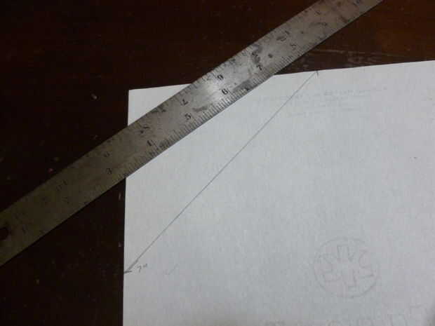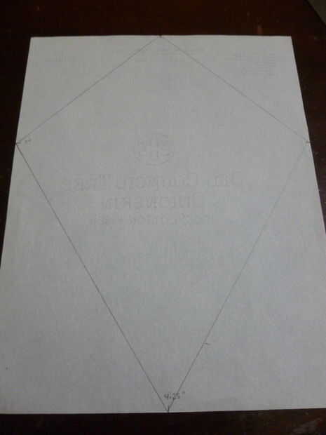 En primer lugar, consigue su 8 1/2 por 11 pulgadas hoja de papel y una regla. A ambos lados del 11", mida 7 pulgadas de la parte inferior del papel y marca con un lápiz. Entonces, en tanto de los 8" lados, mida a mitad de camino (4,25 pulgadas) y marque con un lápiz. Después de eso, conecte las marcas en un patrón diagonal (ver imagen). Corte a lo largo de las líneas que acaba de hacer. Ahora debe tener un pedazo de papel que se asemeja a un cometa pequeño.