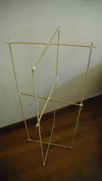 cómo hacer una cometa de caja simple con unos palitos, alguna cadena y un poco de tela. Ésta es 3 pies de altura y cerca de 12 pulgadas de ancho (sin alas).Paso 1: materiales De la cometa se debe:8 tacos - comúnmente de 36 pulgadas de largo, 1/4 de p