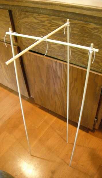 Usted debe medir unos 24-26 pulgadas y marque en cada espiga. Esto es donde vas a latigazo de la tercera pieza de la Cruz.