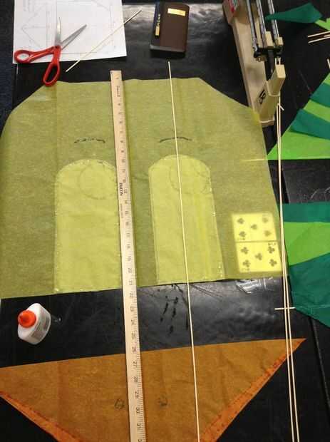 Una vez que termine las decoraciones, voltea tu diseño para que pueda añadir el palo de bambú. Comience por cortar una de sus perchas de bambú a 37 pulgadas. Luego tomar el palo medidor y alinee con el punto inferior del pico y el centro de la parte superior de la vela amarilla. Asegúrese de dejar un boquete de 5 pulgadas entre la cabeza y el pico. Una vez se alinearon con el palillo del metro, tomar su Elmers pegamento todos y hacer una línea fina en el borde de la palanca del medidor. Cuidadosamente ponga el mástil en la línea de pegamento y mantener en su lugar durante al menos 1 minuto.