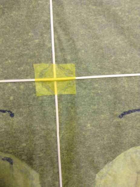 Corte sus otros dos largueros a 27". Ahora pone su palo medidor horizontalmente en la parte superior de la vela amarilla y use pegamento todos de Elmer para hacer una línea. Por 1 min y repetir en la parte superior de la vela naranja. Ahora para evitar que ripeo agregue cuadritos de amarillo y naranja pañuelo de papel al que se intersecan los mástiles.