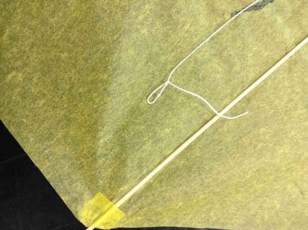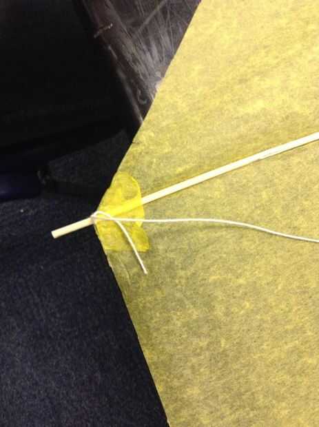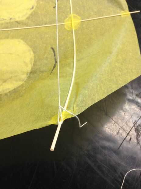 Corte dos pedazos de cuerda que son horizontalmente sobre el ancho de la cometa. Atar el extremo de la cuerda en el borde saliente de larguero del bambú. Doble el mástil para crear un flex. Ahora, ate un lazo en el otro extremo de la cadena, que es la longitud correcta para sujetar la cometa en un flex. Repita en la vela naranja.