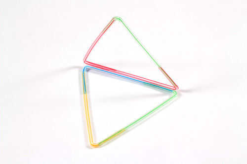 Cinta 2 triángulos junto con cinta scotch en cerca de 80 grados para hacer una célula. Hacer 10 células.