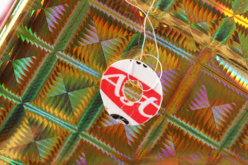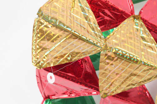 Use un punzón para papel para hacer un agujero en la tapa de un envase de yogurt y cortar un círculo alrededor de él para hacer una arandela de plástico suave. Esta lavadora le permite ajustar rápidamente cómo vuela la cometa. Enrosque la brida a través de la arandela y coloque con un bucle simple. Ate su cuerda de cometa a la lavadora.