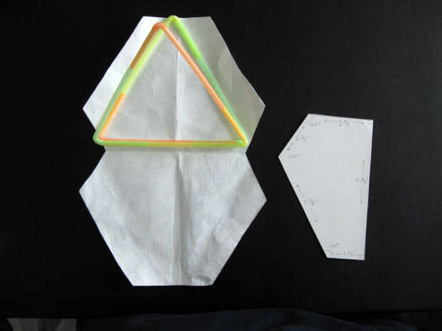 Uso Tyvek (correo sobres gran trabajo), papel de tejido, mylar o cualquier material ligero de la hoja para hacer las velas. Comience con una hoja de aproximadamente 20 "x 30" en tamaño. Doblar por la mitad cuatro veces. Crear una plantilla de cartulina o una caja de cereal y colocar en el material de la vela doblada en la esquina exterior cerrada, que un ángulo recto perfecto. Cortar el material en los 3 lados angulados. Revelado, contará con 8 velas individuales. Hacer tantas velas como necesidad-Tyvek es barato.