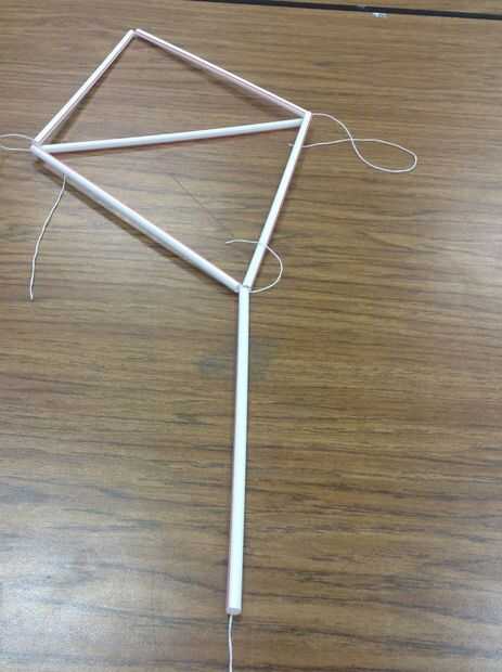 se trata de una cometa tetraédrica de 10 células, basada en el diseño de paja flexible de emilyfis.Materiales: (La mayoría normalmente se puede comprar en una tienda de dólar)Pajas flexiblePajitas rectasCinta de embalajeCinta Scotch4" mini abrazadera