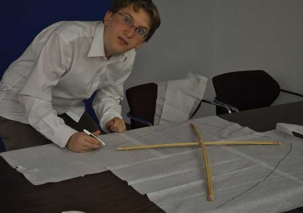 Con un lápiz trazar alrededor de la estructura de la cometa un extra de 2 pulgadas.
