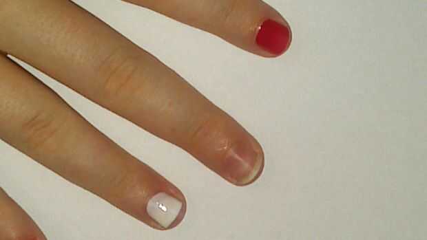 arco de uñas paso a paso tutorial de arte siempre luce muy elegante y con clase!!!Paso 1: Aplique la capa base y deje que se seque totalmente (rojo)Paso 1: Paso 2: tome un color de contraste en una placa rugosa (blanco)Paso 2: Paso 3: tomar la herram