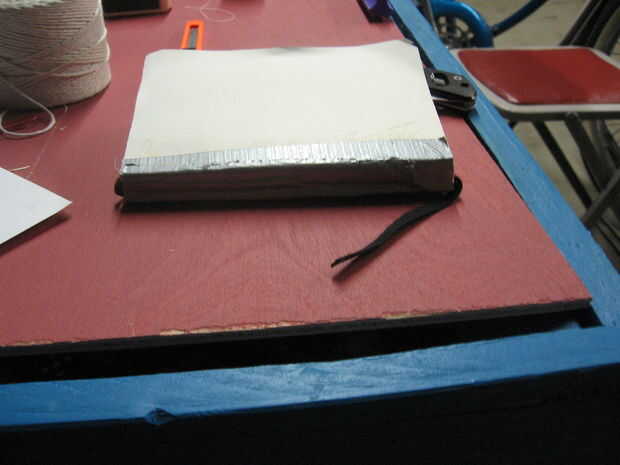 A continuación coge la cinta, esto será la marca de libro y de la cinta en la columna vertebral.