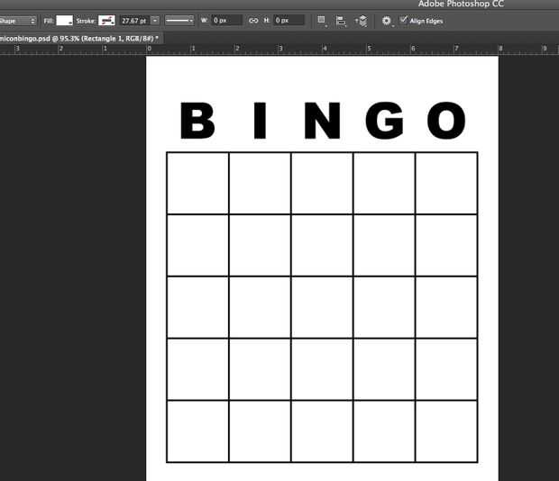 2) Tire de la plantilla de la tarjeta en blanco en Photoshop. Compruebe el tamaño. Mi plantilla fue aproximadamente 8 x 10, un tamaño cómodo para trabajar con.