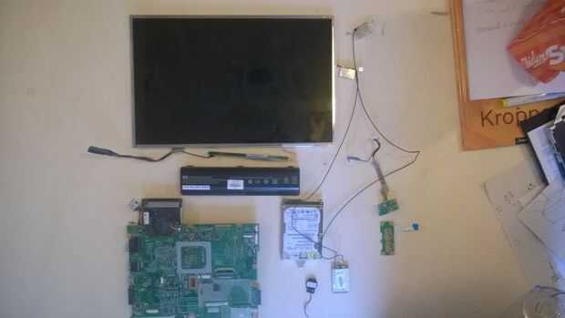 He quitado todo excepto la motherboard, el disco duro, batería y la pantalla misma.