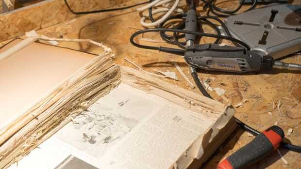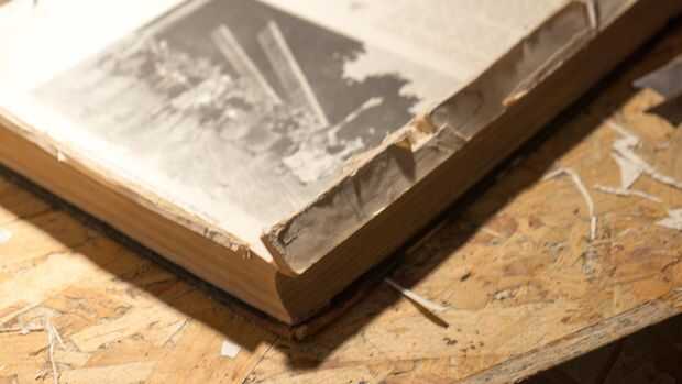 Me miró fijamente con un cuchillo y una regla y comencé a cortar las páginas una por una. Si puede, intercambiar las hojas a menudo, una hoja sin filo solo rippes el papel. Yo pegado todos los lados en el libro con pegamento para madera antes JPZV para cortar (y utilizado varias cosas a la presión hacia abajo)
