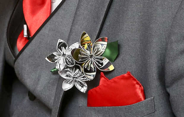 Decidimos hacer los ojales para el banquete de boda. Hemos decidido hacer flores de papel por lo que podríamos hacer antes de la boda cuando teníamos más tiempo y así nos ahorramos que acomete más a la boda. (y nos gusta la apariencia de flores de papel).