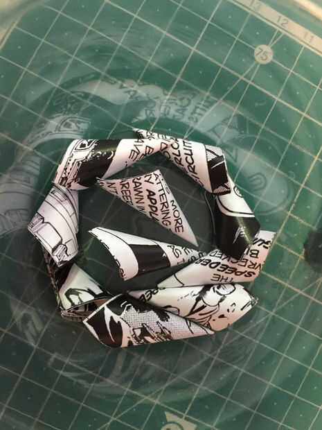 6. ahora es el momento para pegar los pétalos para hacer el 1-5 de la flor. Poner pegamento en los bordes externos del doblez del paso 5. y presione los lados para formar un cono poco como estructura.