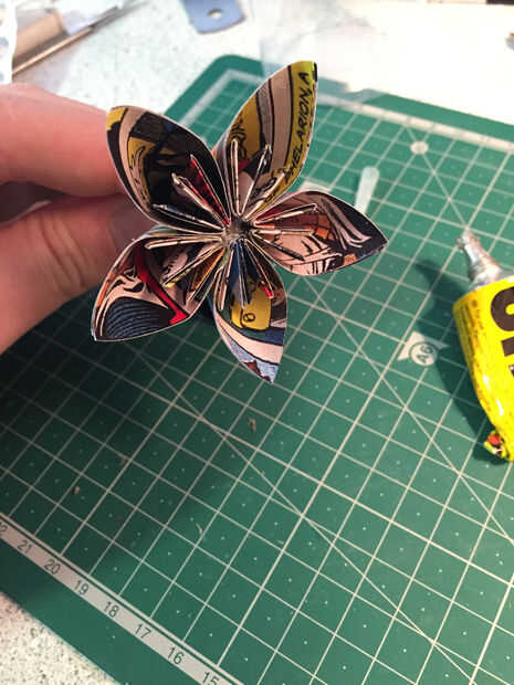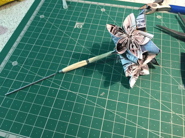 Cuando el pegamento haya secado es tiempo de arreglar todas las tres flores juntas.