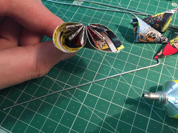 Una vez que los pétalos han sido pegados a sus respectivos cables dejarlos en seco/sistema.