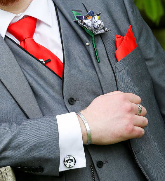 Cuando llega el gran día distribuir los ojales a la boda y ayudarnos unos a otros ponerlos en como a veces puede ser un poco difícil poner uno en sí mismo :)